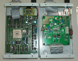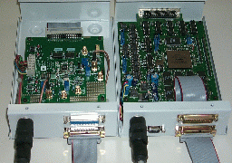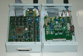 Side view of the Buffer/Clock and ADC boards in theirs enclosures.
